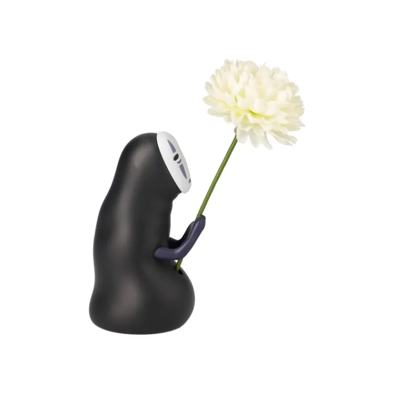 Statue de No Face tenant une fleur en regardant vers le haut.